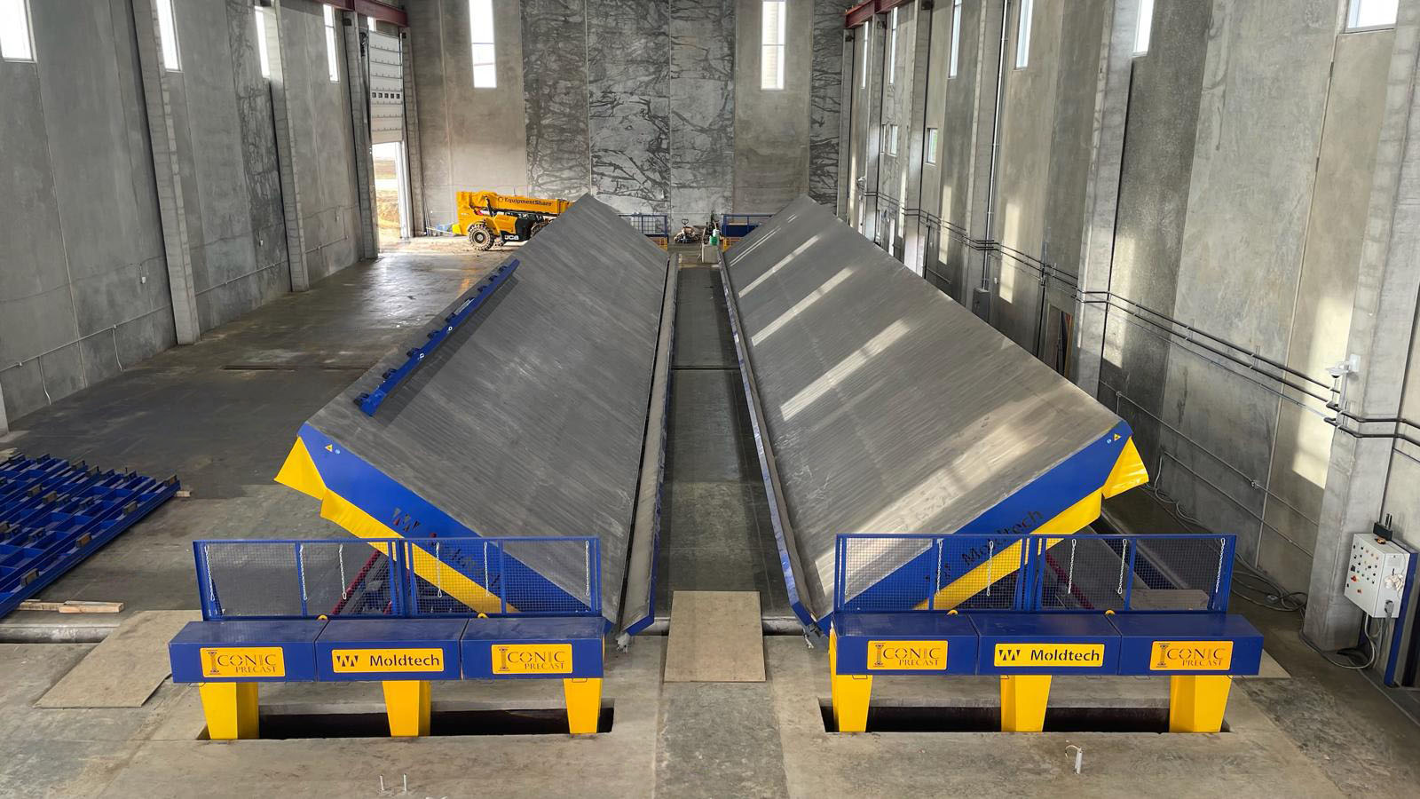 En este contexto, Moldtech ha suministrado dos mesas basculantes de gran formato a Iconic Precast, empresa ubicada en el estado de Iowa, especializada en la fabricación de paneles prefabricados de hormigón. Este suministro no representa únicamente la incorporación de nuevo equipamiento, sino la consolidación de un modelo productivo orientado a la fabricación en planta.