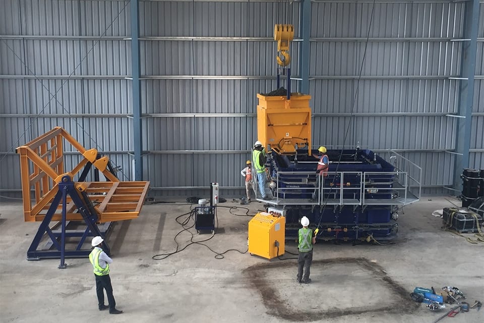 La máquina Moldtech MT20 fue seleccionada, tras de un cuidadoso proceso de selección, por ser el sistema más flexible y versátil para hacer marcos prefabricados. SPCPL ha prescrito su utilización a su subcontrata Creatiive Infra and Construction.