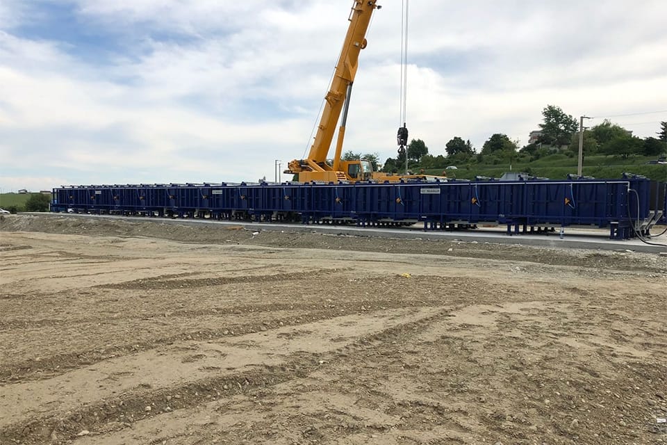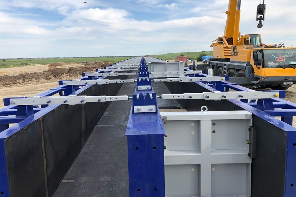 La semana pasada fue enviado a Rumania un molde de pilares de 36 metros, de doble línea de trabajo y con capacidades de producción que van desde columnas de 600 x 600 hasta 1000 x 1000.