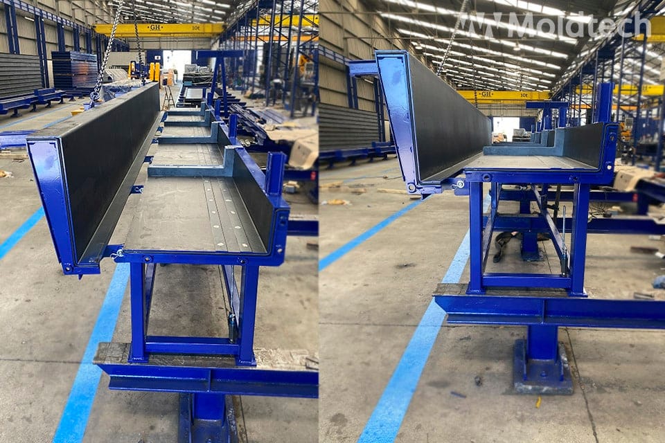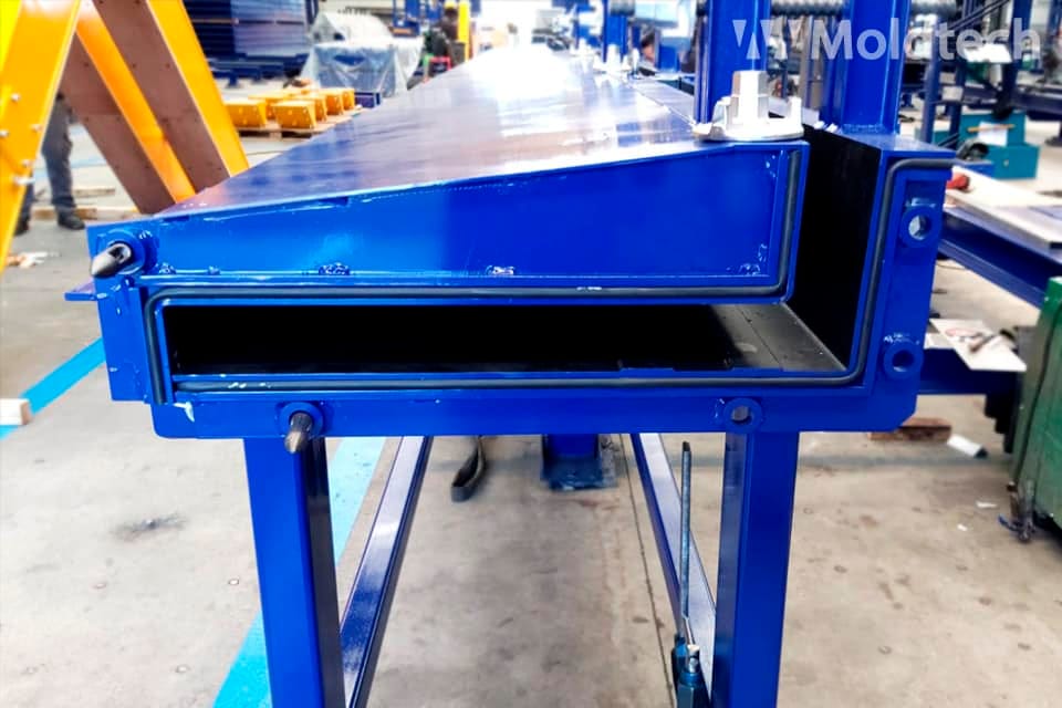 Estos moldes están diseñados basándose en un concepto de batería lineal para conseguir una alta capacidad de producción. Cada molde tiene una longitud de 6 metros y dispone de un juego de 5 separadores teniendo una capacidad de producción de 5 piezas por ciclo.