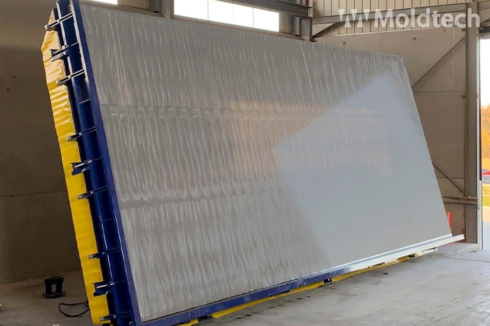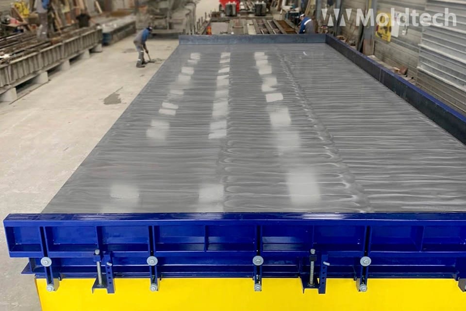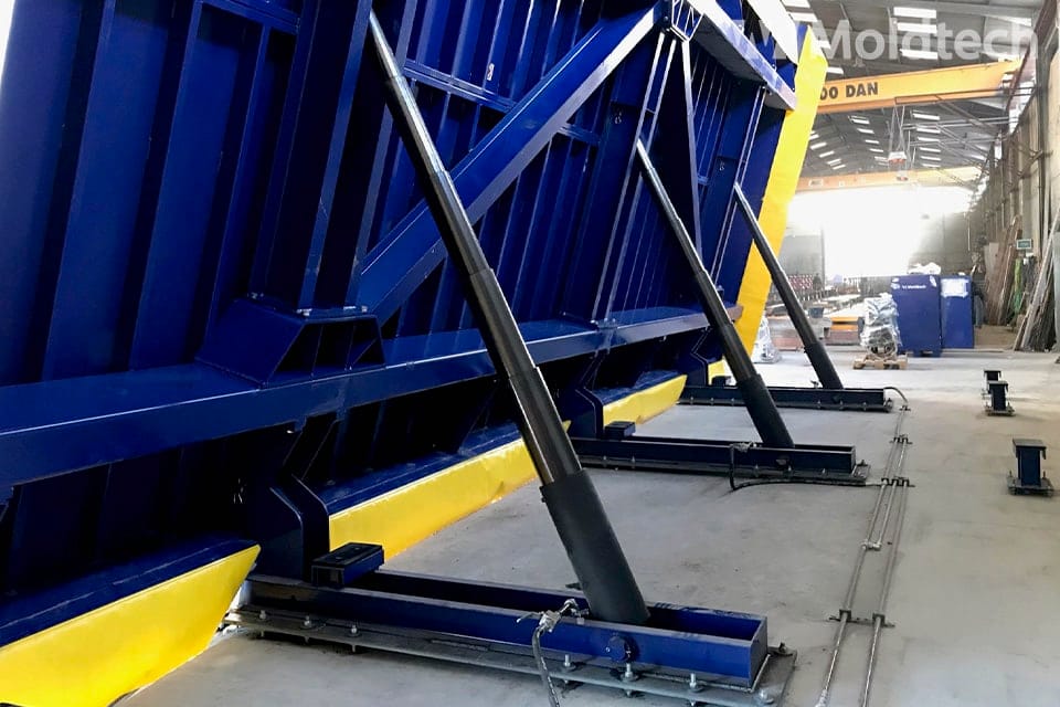 The Moldtech tilting table of 12.5 meters enables the company to produce precast concrete elements of up to a thickness of 30cm and with a load of 750kg/m2. The tilting table will allow the company to easily lift the panel, reduce the amount of steel reinforcement, improve their de-molding system and ensure an excellent wall panel finish. The table was conceived to be used with self-leveling concrete for which it was prepared with a special plate finish.