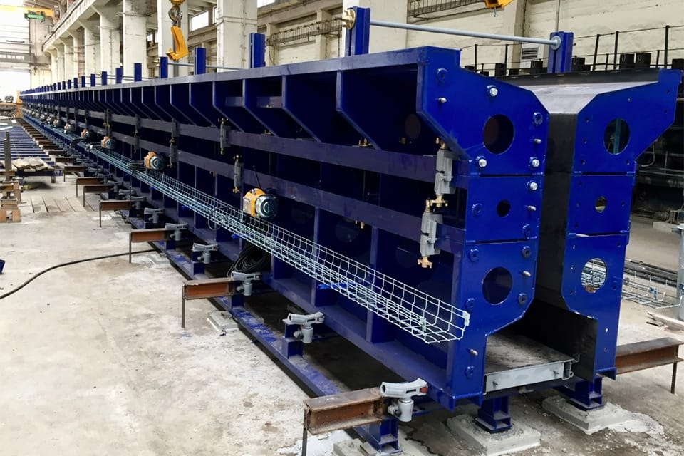 One of the four lines was equipped with a special mould with 48 m length and modular height up to 2,2 m with a hydraulic system to open and close the mould assembly with minimum effort and maximum production efficiency.
