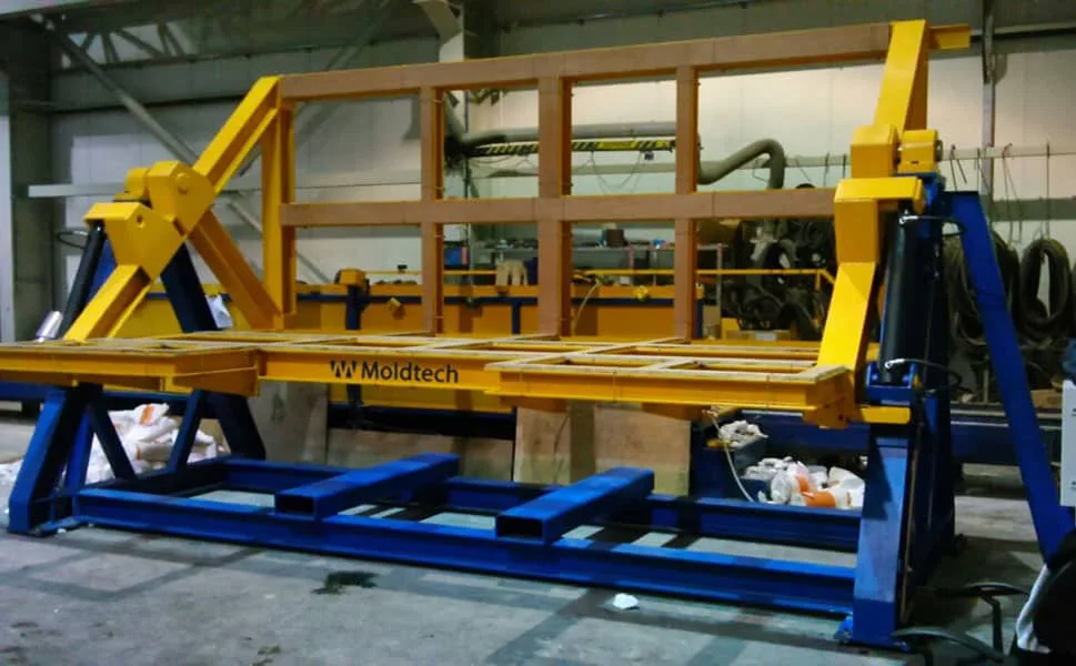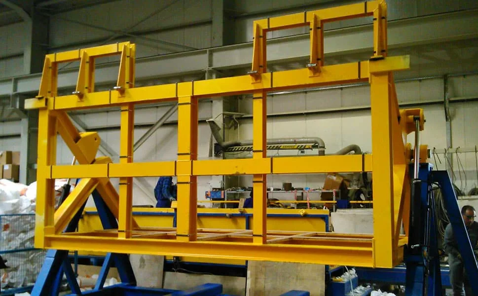 This machine has the capacity to turn prefabricated concrete pipes and frames up to 15t. The maximum load capacity of the equipment has been designed considering the dimensions of the precast elements that our client needs to turn.