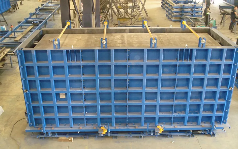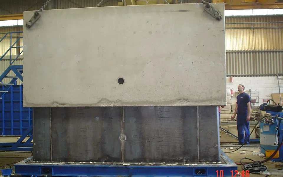 Due to the large size of the prefabricated tanks for underground containers which are usually made with this type of mould, it is possible that the outer formwork can be removed some gap of time before removing the piece. For this reason, in order to achieve a higher productivity, it is interesting having more than one inner mould per outer formwork.