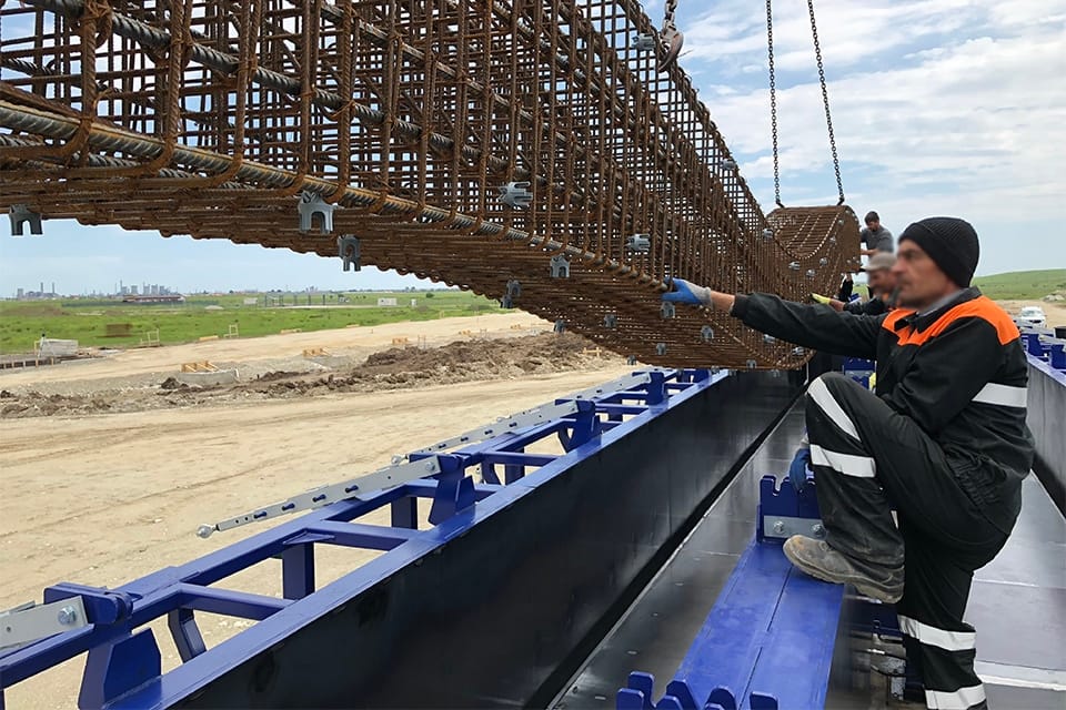 - 100 metre Universal Casting Bed Systems with 1000 TN tensioning heads.