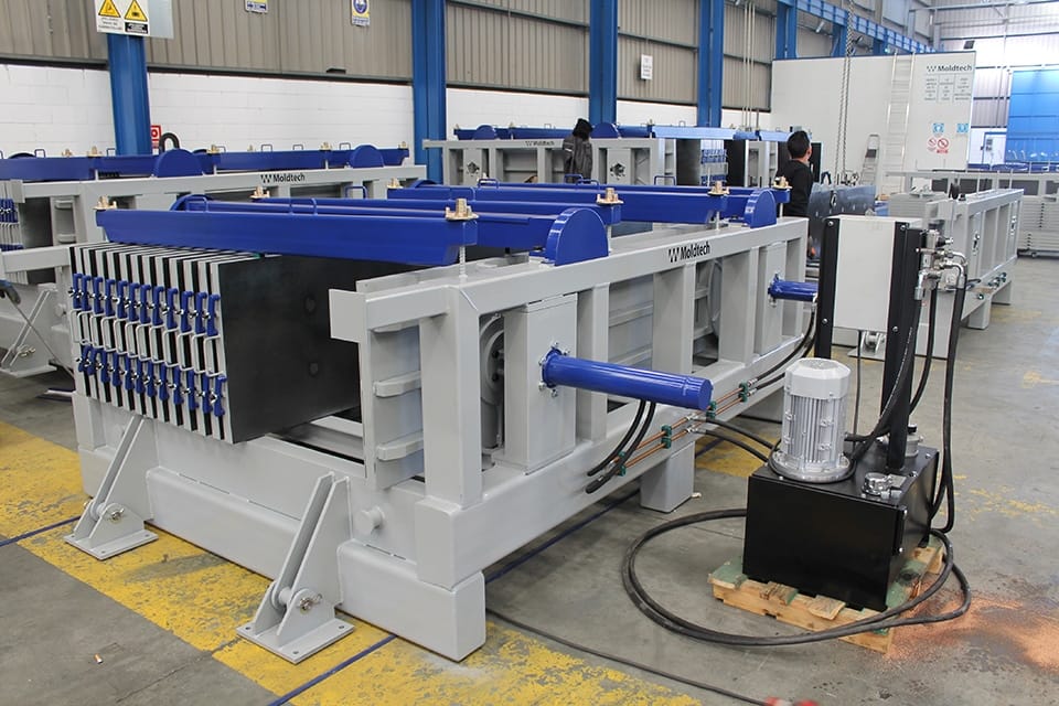 6 moules pour la production empilée de panneaux aux dimensions 3 x 0,65 m.