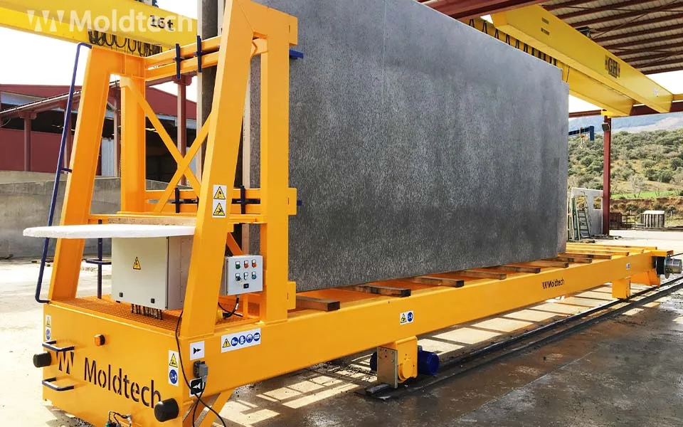 El Carro Transportador de Paneles de Moldtech es una solución para optimizar el traslado de productos acabados desde el punto de fabricación hasta su sitio de almacenamiento.