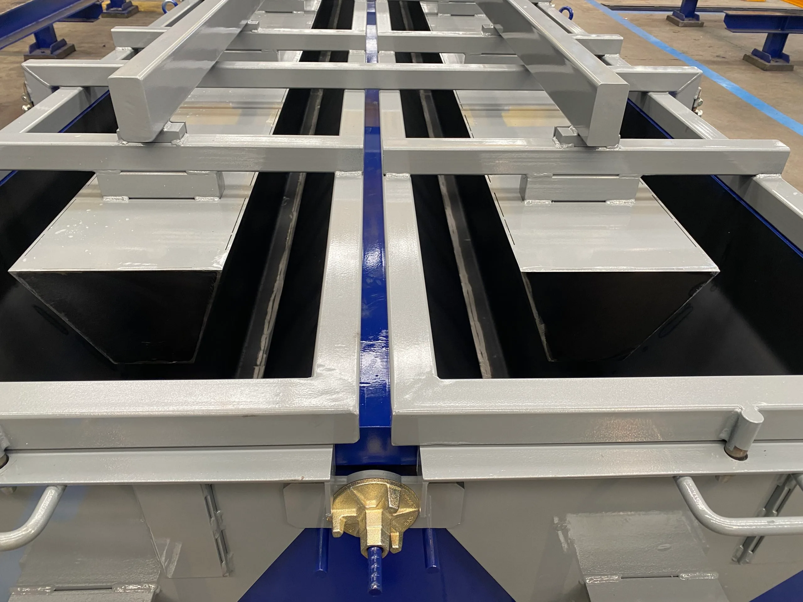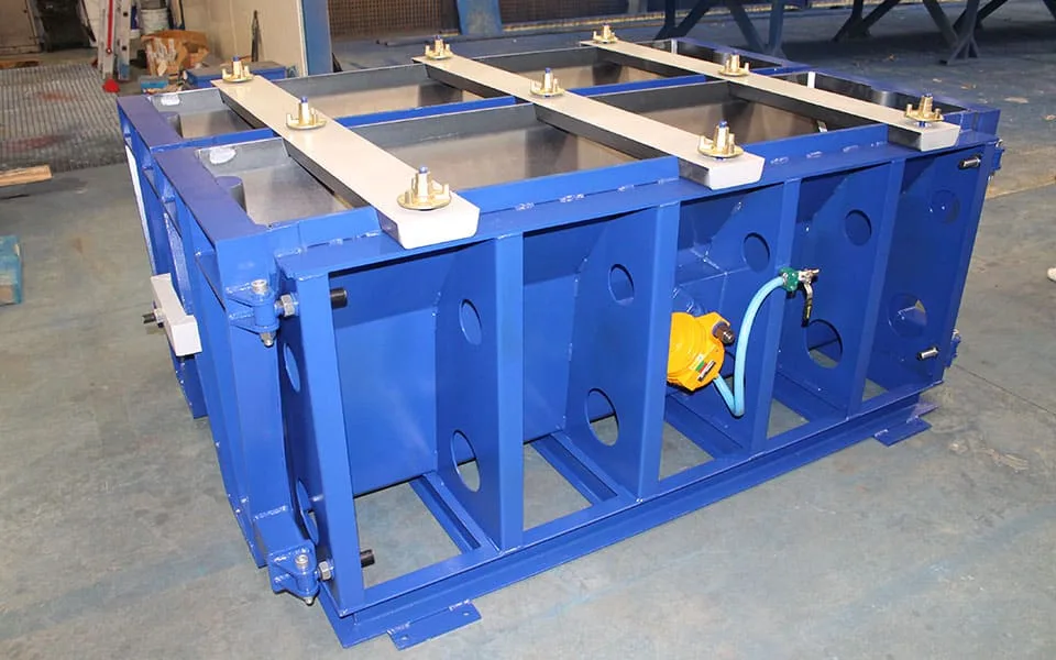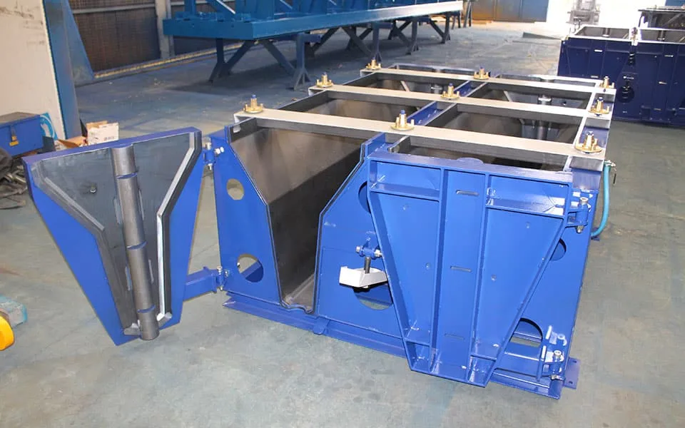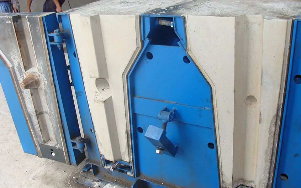 Los moldes incorporan sistema de vibración externa para una mejor compactación del hormigón y perfiles de goma en puertas y separadores para asegurar la estanqueidad del molde.