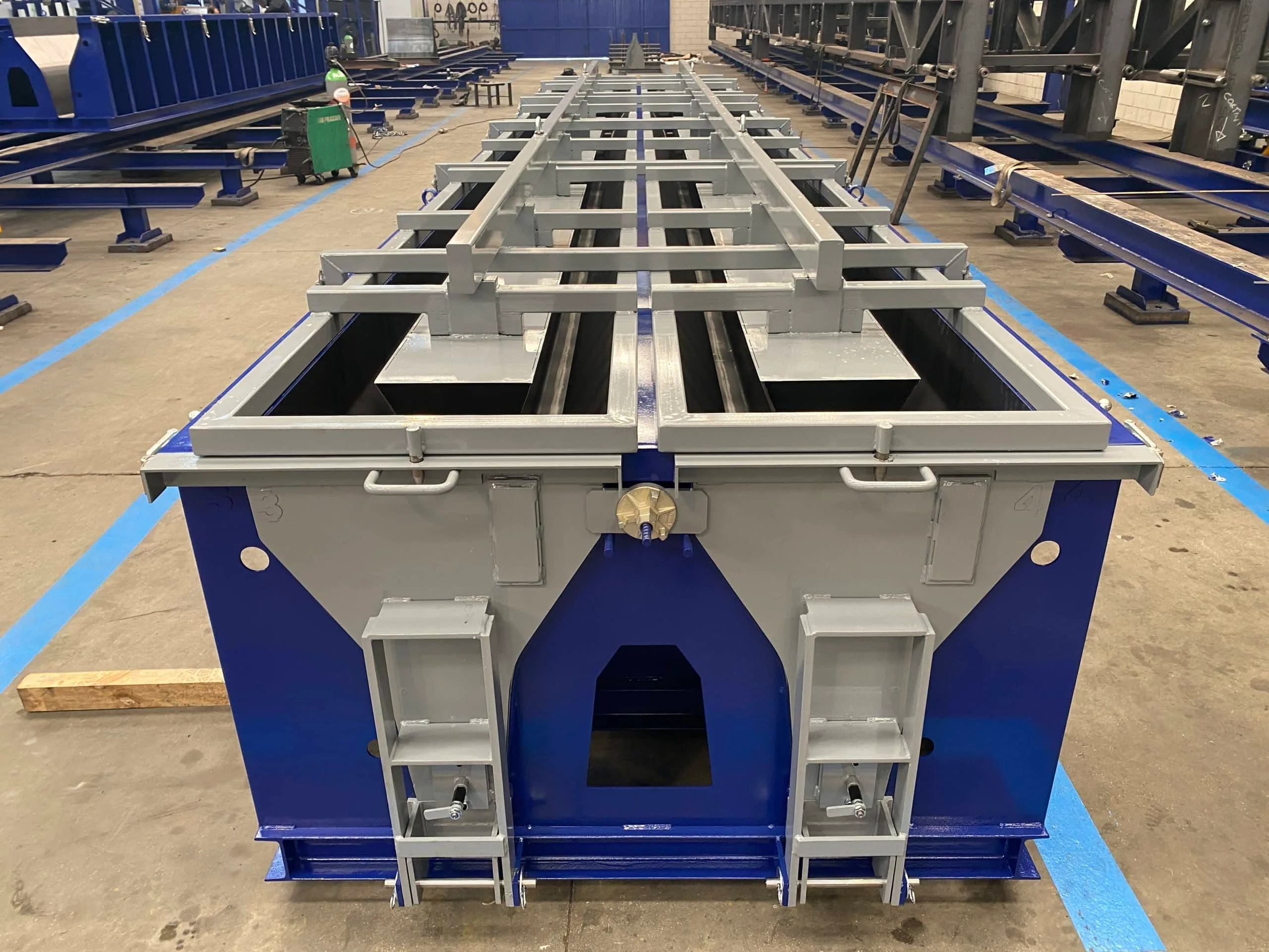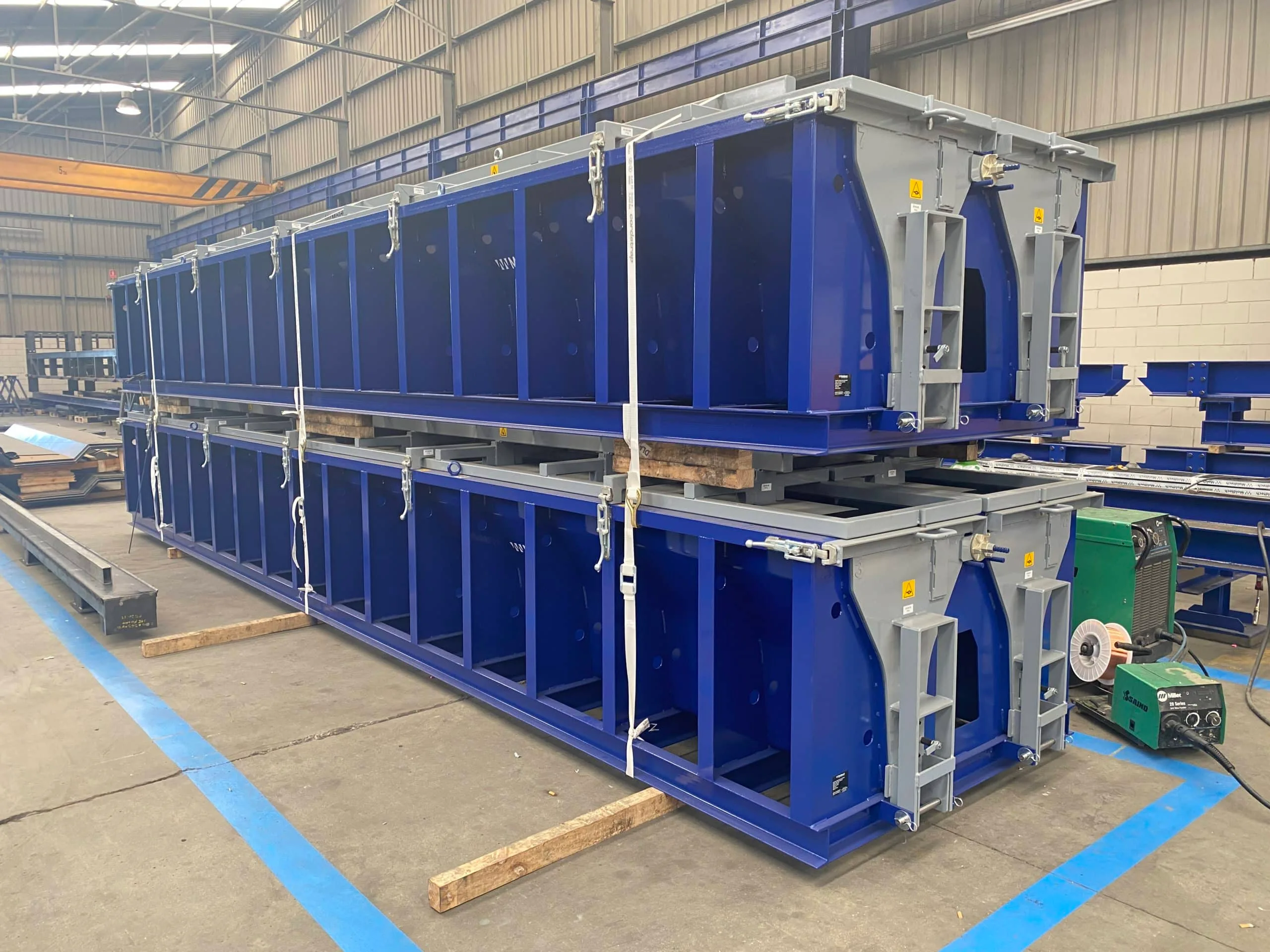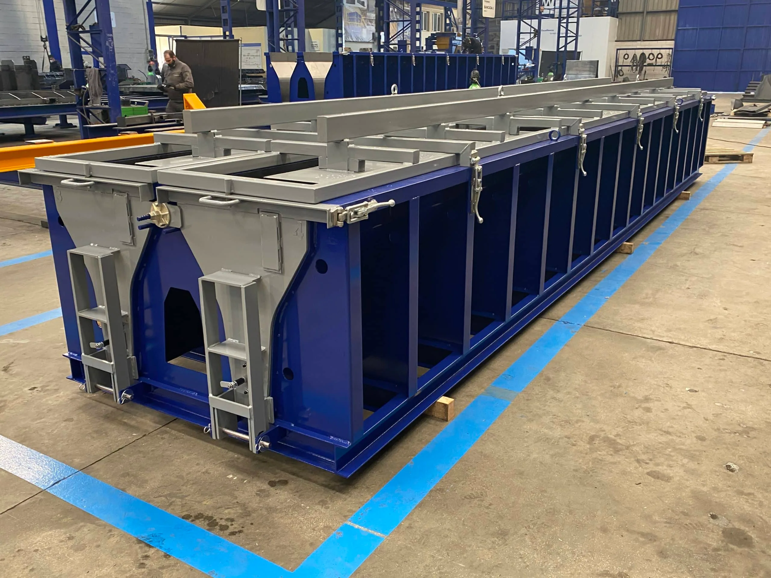 Los moldes incorporan sistema de vibración externa para una mejor compactación del hormigón y perfiles de goma en puertas y separadores para asegurar la estanqueidad del molde.