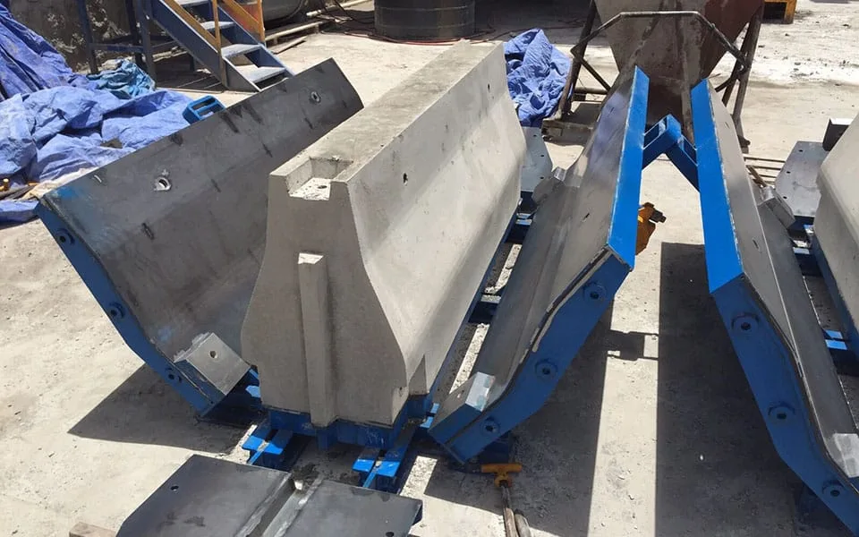 Los moldes suelen ser bien dobles para obtención de barreras prefabricadas en posición invertida, o bien simples para la obtención de las piezas en posición directa.
