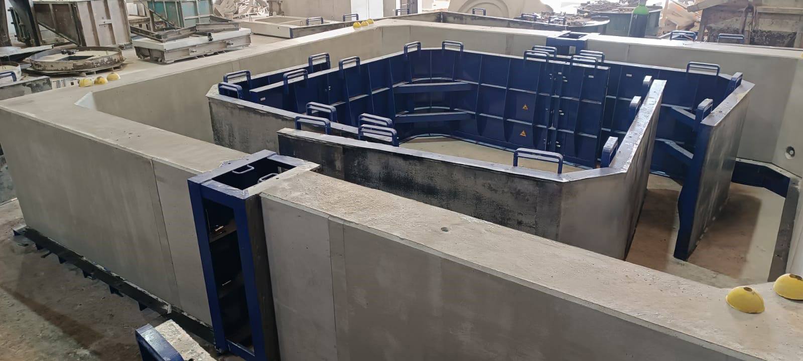 Se trata de un sistema modulado de encofrados de acero pensado para la producción de marcos y semi-marcos prefabricados utilizando hormigón dormido.