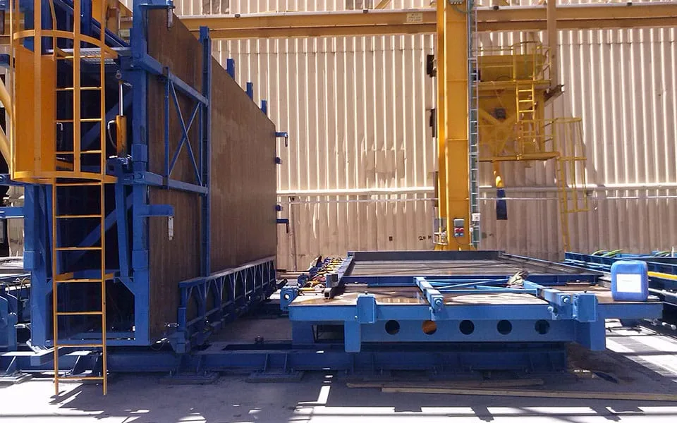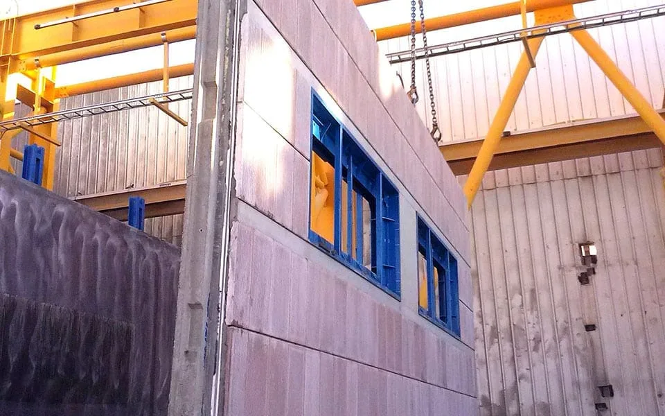 El molde de panel sándwich presenta un total de 4 sistemas hidráulicos operados de forma independiente para facilitar la operación del Sistema completo. La parte horizontal del molde puede incorporar un sistema de vibración para una óptima compactación del hormigón.