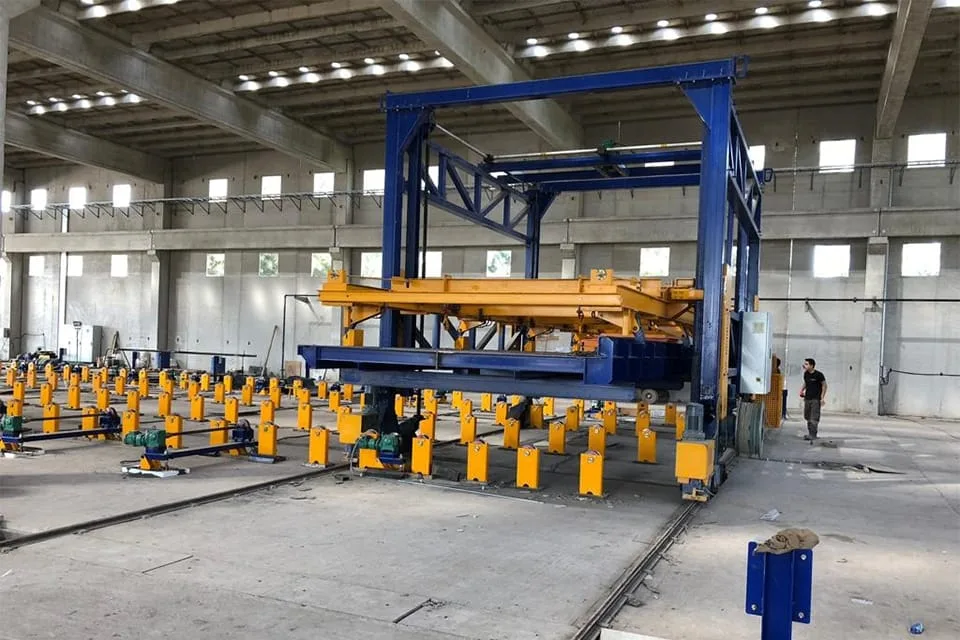 En el lado basculante de la mesa, podemos preparar el panel en posición horizontal lo que nos da la oportunidad, además de un acabado liso de hormigón, de utilizar piedra decorativa o encofrados sin ninguna dificultad. Después de verter la capa de hormigón, podemos colocar la capa de aislamiento encima y hacer una conexión entre estas 2 capas mediante el uso de termopins.