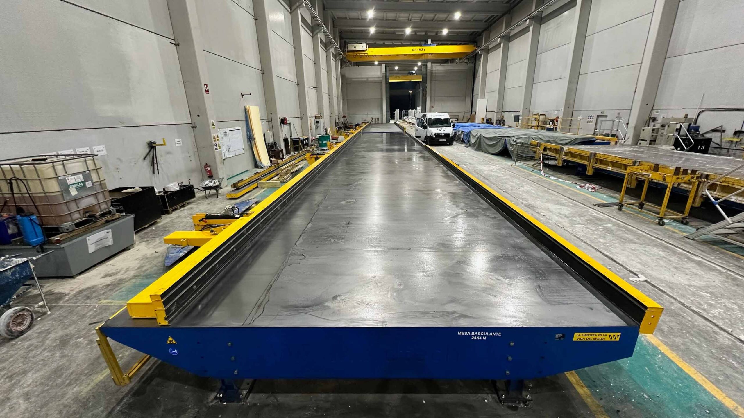 Moldtech ha fabricado y suministrado dos mesas basculantes de 24 x 4 metros, diseñadas para la producción de paneles prefabricados de gran formato.
