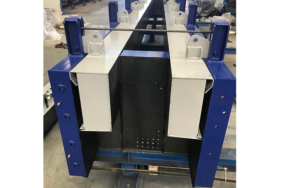 - Molde autoportante de “panel TT” de 2.500 mm de ancho y altura máxima de vigas de 50 cm. Capacidad de pretensado de hasta 150 toneladas.