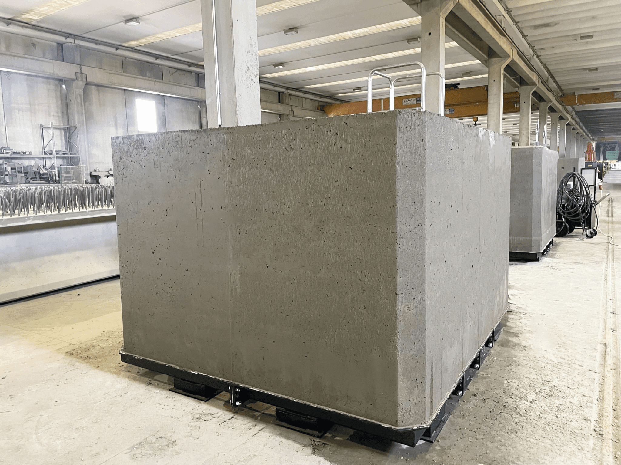 Para esta empresa se suministra en el PROY22-058 un MOLDE SEMI MARCOS/DOCKING BOXES está conformado por un conjunto de laterales móviles y conjunto de laterales fijos con noyo, que ensamblados en conjunto, dan forma a la pieza a fabricar. Además, se suma un carro de vibración 6M está diseñado para llevar a cabo la operación de vibración de hormigón.