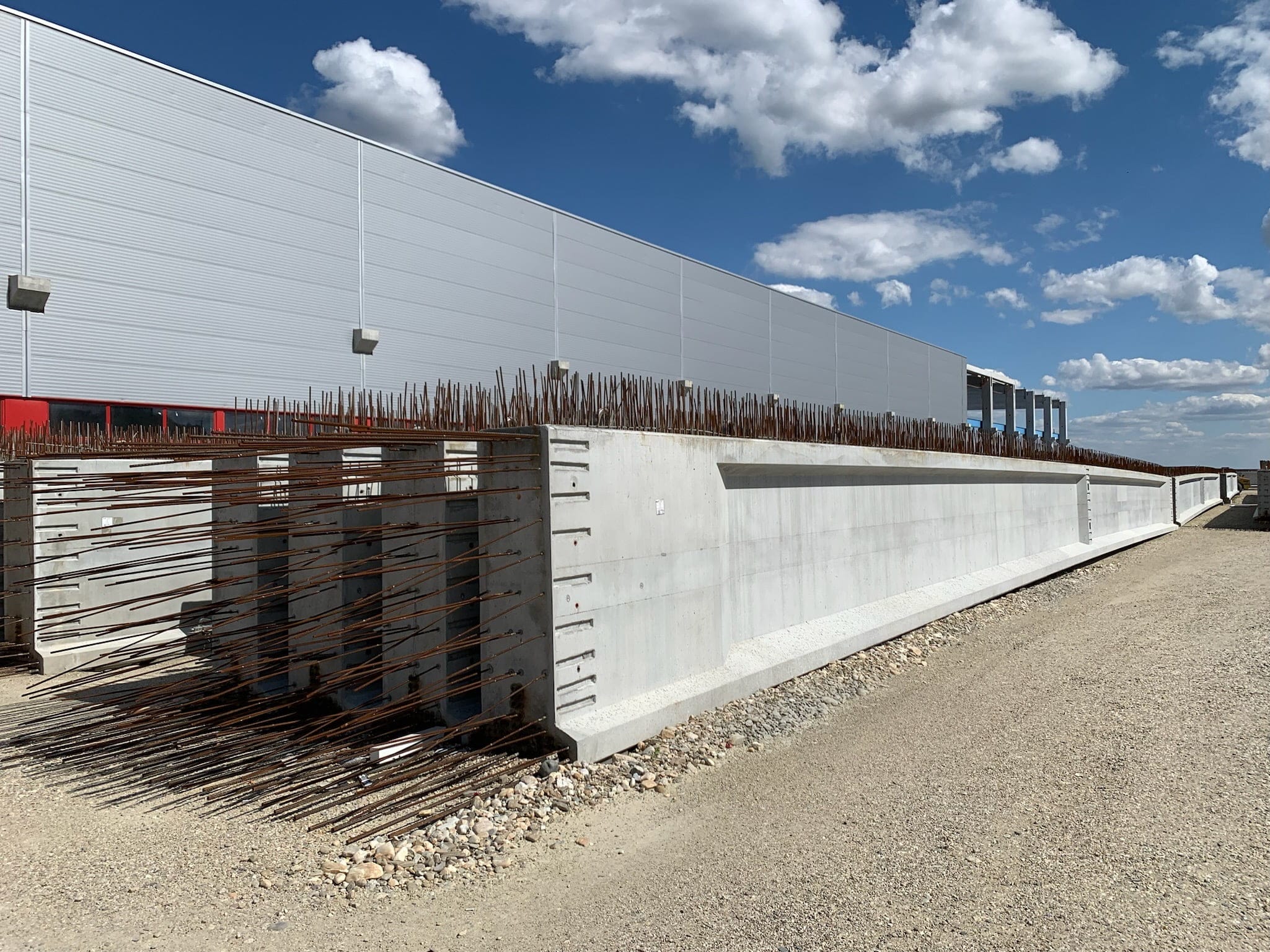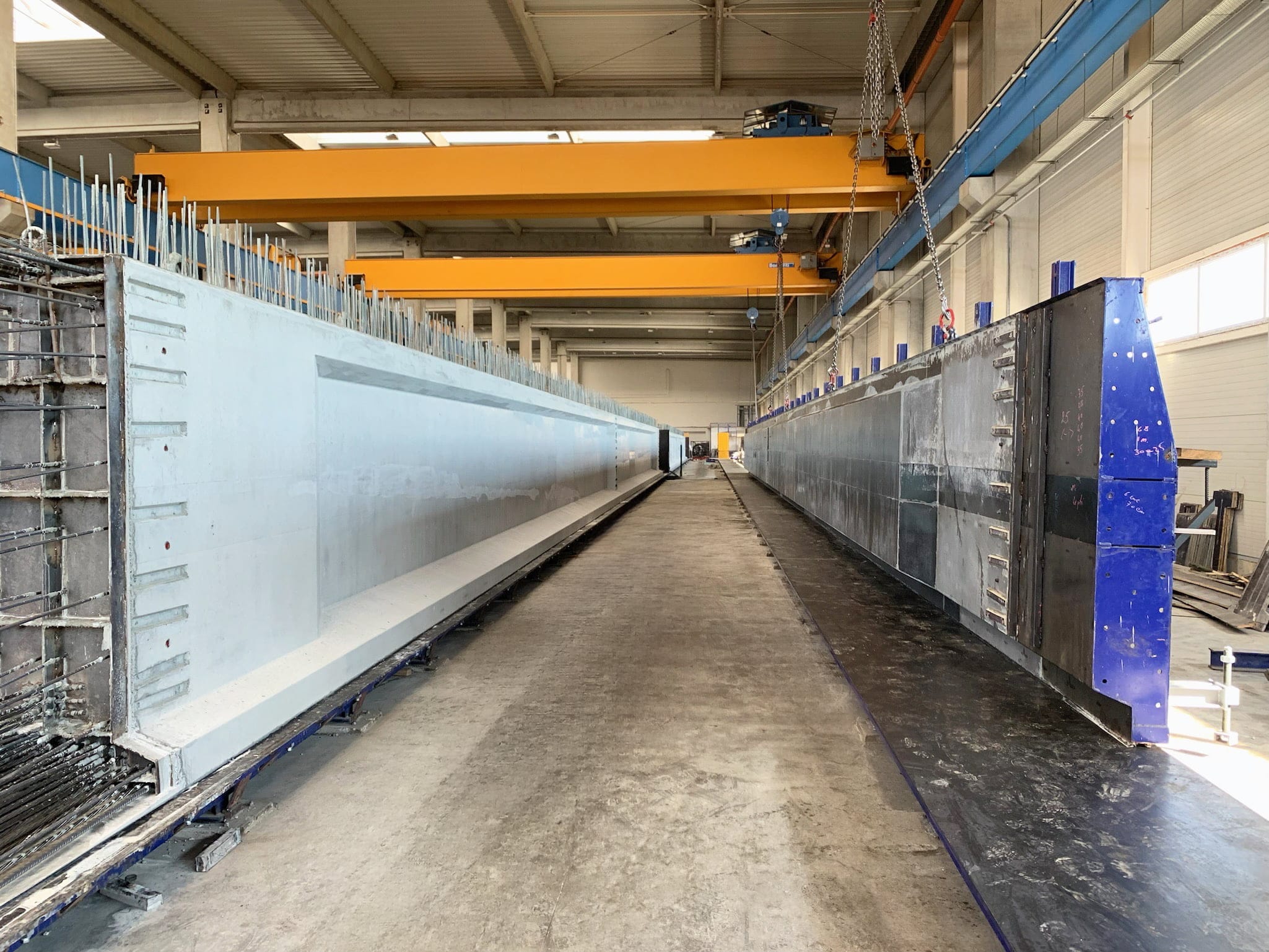 Los elementos pretensados se fabrican en pistas universales sobre las que se colocan laterales de moldeo. Utilizando un sistema de pretensado, compuesto de cabezales de destensado y equipamiento hidráulico de tensado, se tensan una serie de cables de acero para producir piezas de hormigón de mayor resistencia.