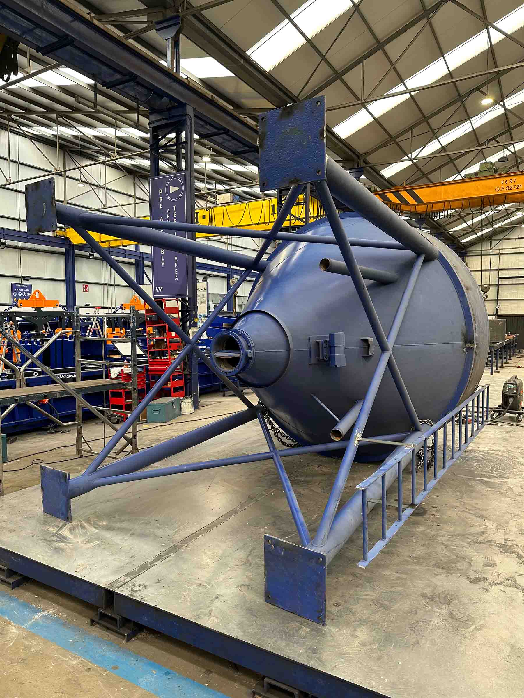 Moldtech ha diseñado y fabricado una tolva metálica de almacenamiento y dosificación destinada a optimizar la gestión de material a granel dentro del proceso productivo.
