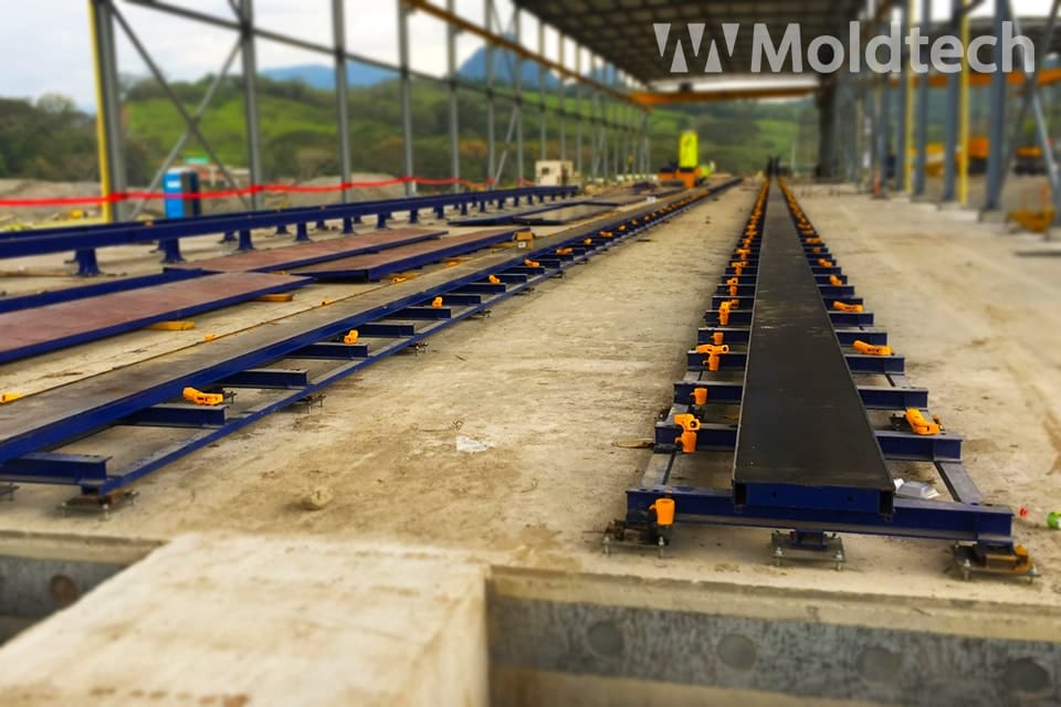 The project includes a universal bed with a prestressing capacity of up to 600 tons, and the complementary moulds for the bed, allowing to produce “I beams” and “rectangular beams” for the support of T beam slabs and HCS.