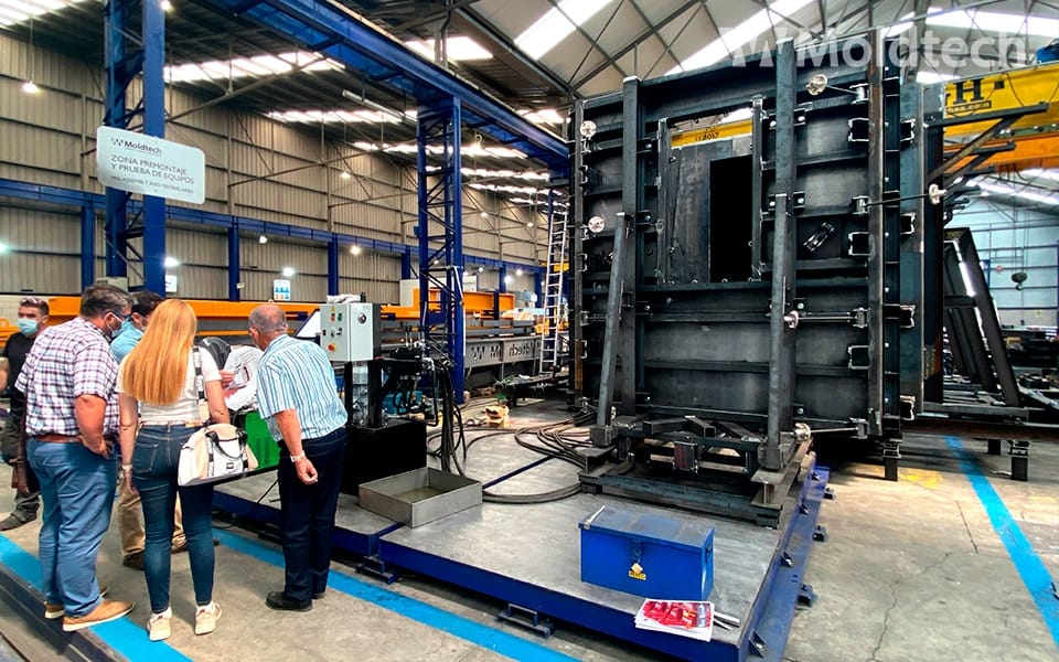 Во время конференции они смогли стать свидетелями демонстрации различных форм в испытательной зоне на заключительном этапе их производства. Такие разнообразные элементы, как 3D-форма для строительства домов, предназначенных для Франции, или вертикальная кассетная форма для больших сборных панелей, предназначенных для Израиля, а также другие элементы.