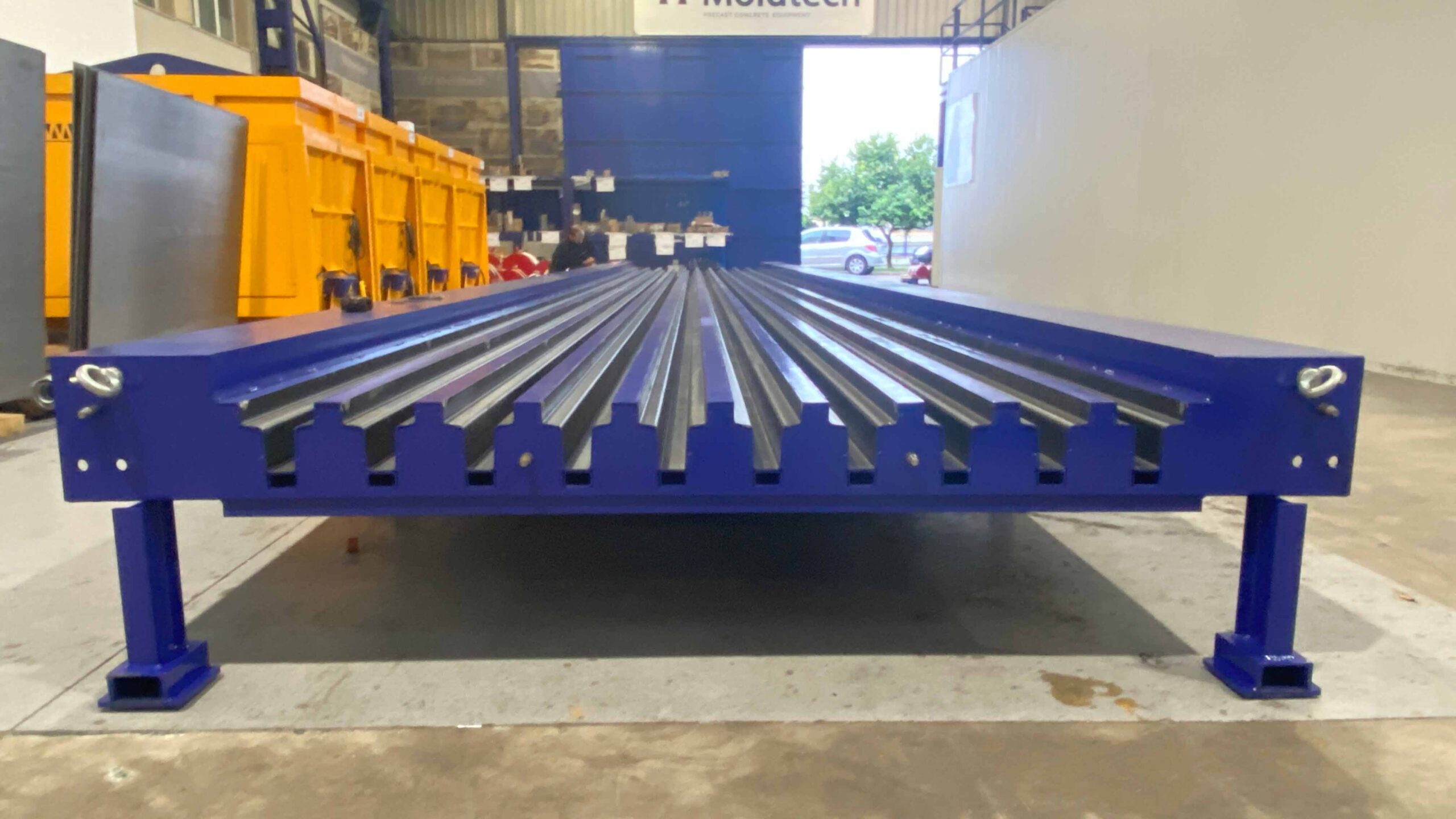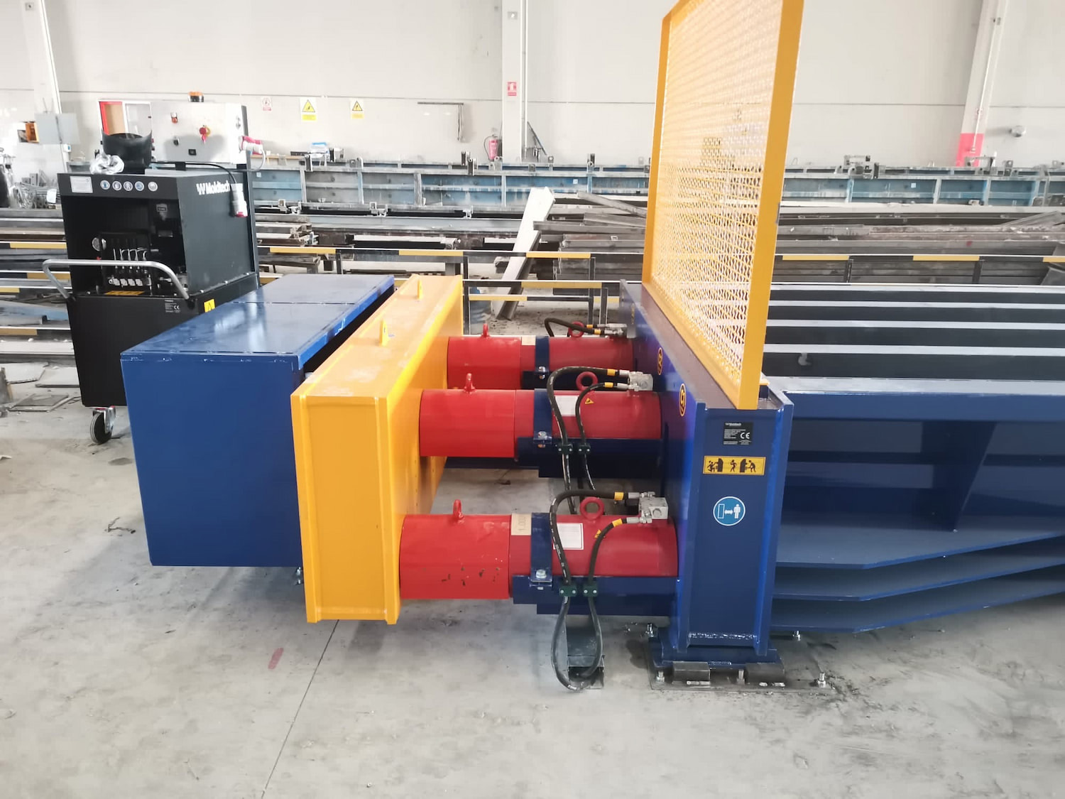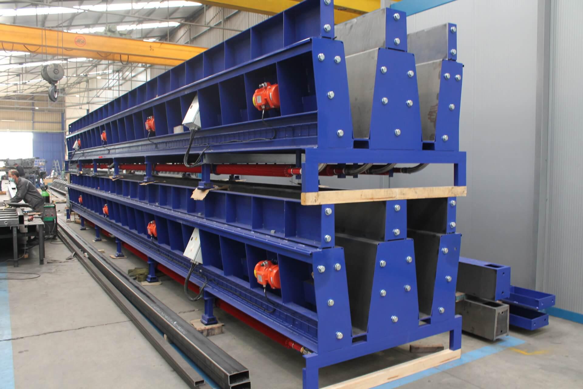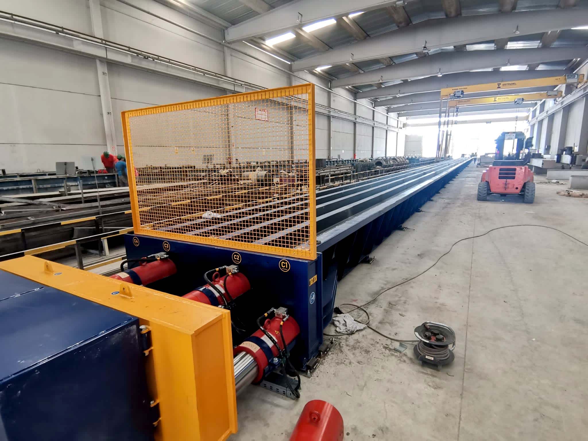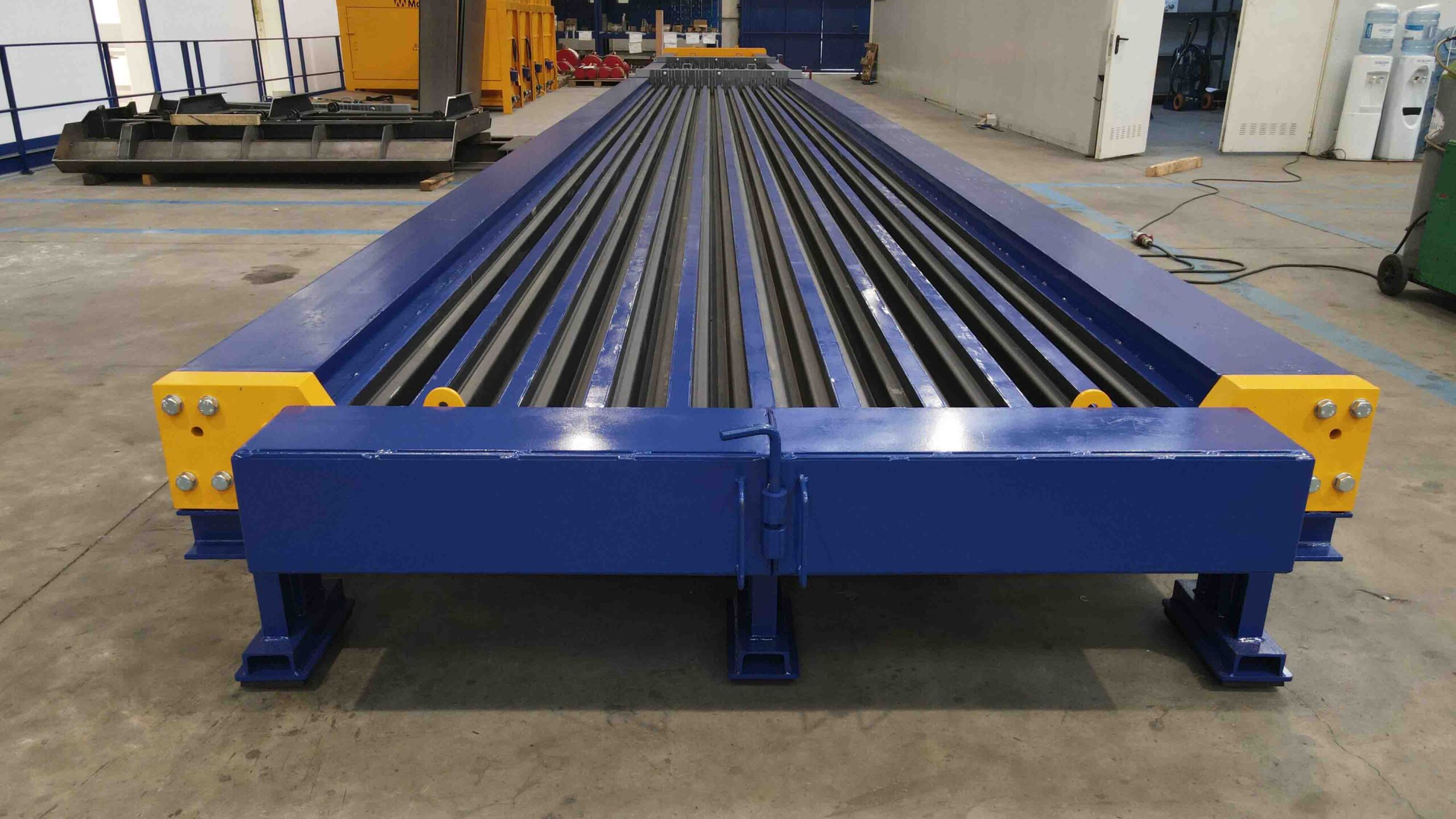 Самонесущая форма для производства предварительно напряженных балок в в виде кассеты. Количество рабочих линий может изменяться в соответствии с производительностью, которую необходимо достичь клиенту. Данная форма имеет анкерные упоры предварительного напряжения и гидравлическую систему для безопасного выполнения операции ослабления кабельных канатов.