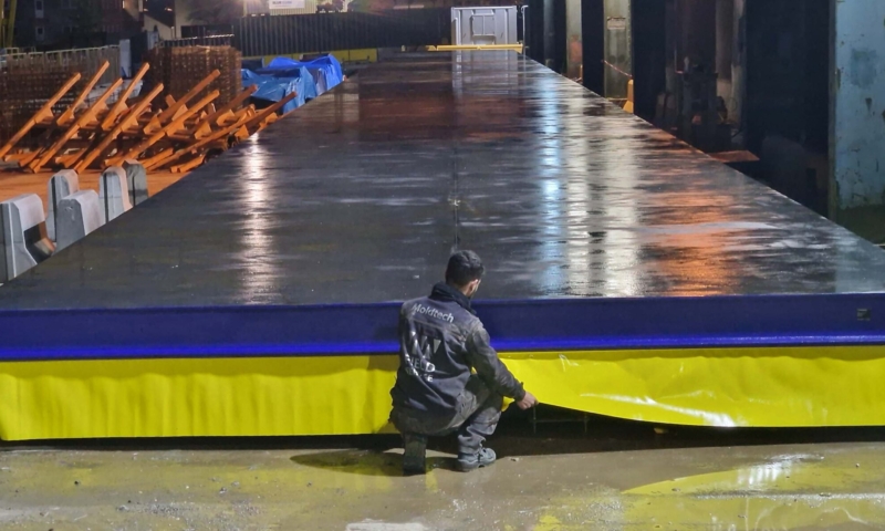 Ширина стола должна учитывать максимальную высоту панели. Обычно стол имеет 2 откидных продольных борта, что позволяет легко извлекать панель. Размеры панели, которую необходимо изготовить, можно регулировать с помощью различных опалубочных систем. Стол изготовлен в виде модулей длиной 11,8 метра, которые свариваются монтажниками Moldtech во время ввода в эксплуатацию для получения необходимой длины.