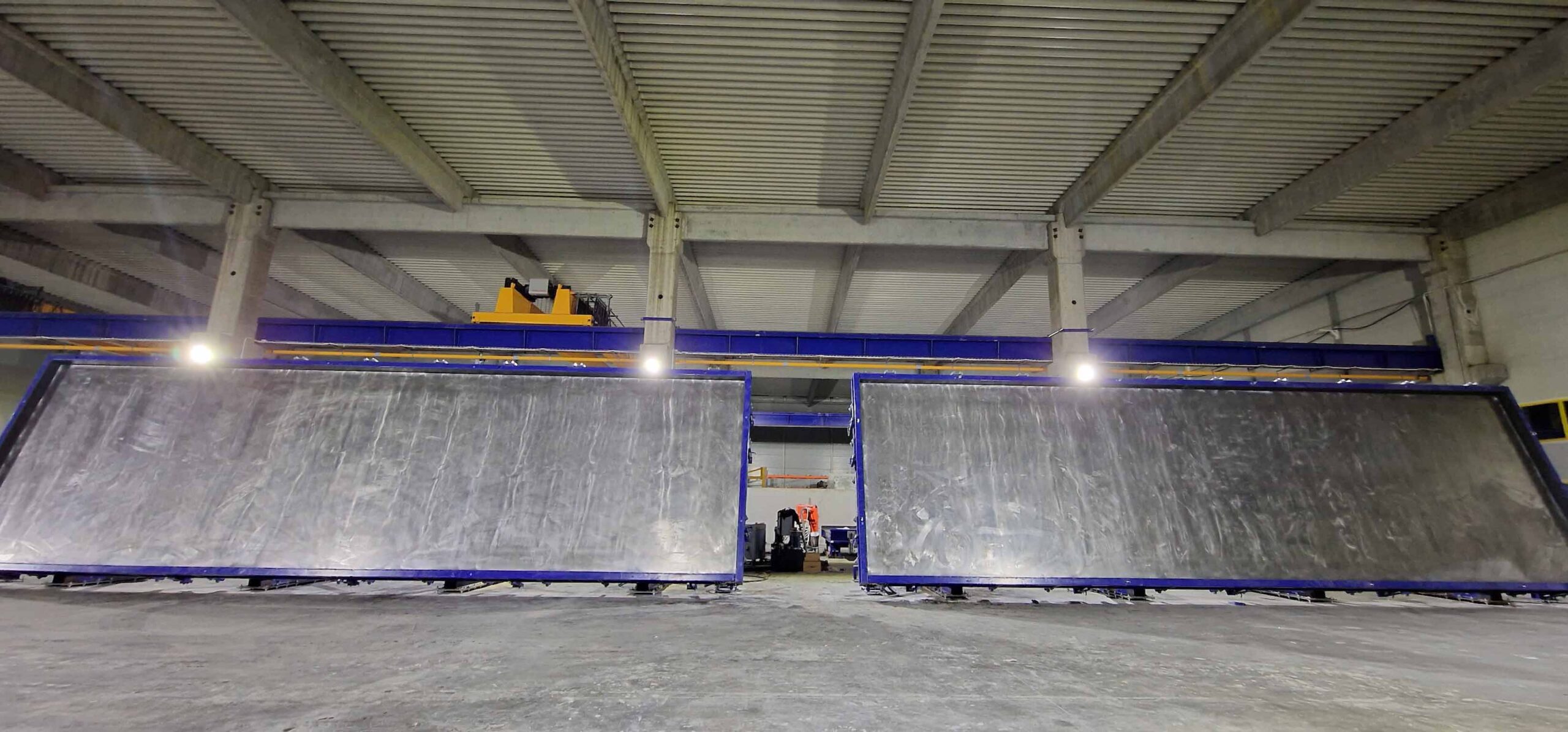 Панели для промышленных зданий обычно формуются по стандартному размеру и поэтому используют одну фиксированную оснастку и другую – откидную оснастку, в то время как панели для жилых проектов могут сильно различаться по размеру и форме и требуют более гибких решений.