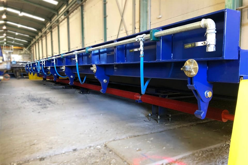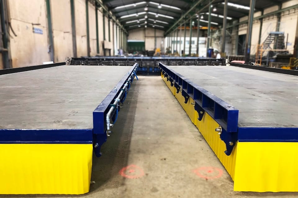 - Together with these tables, Moldtech has also supplied panel racks for storage, with 6 meters length and upper and lower support brackets, to cater different panel heights.