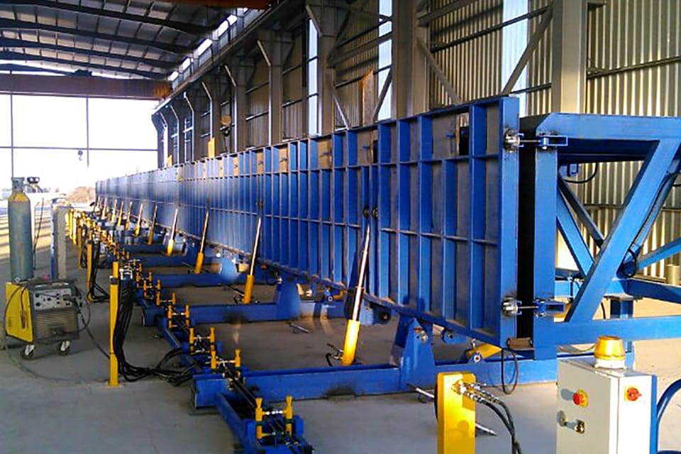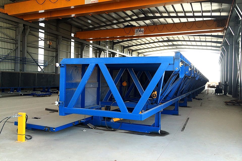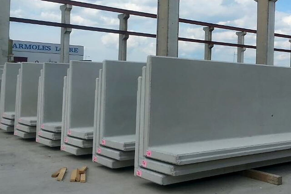 - 4 tilting moulds of length 53,2 m for the production of L-shaped wall segments for land retaining.