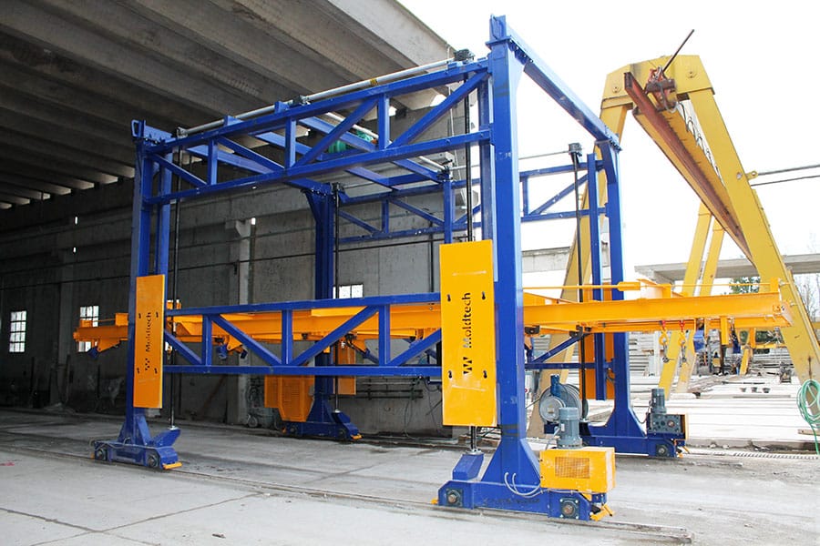 Moldtech has supplied a semi-automatic machine for concrete spreading, with 3.5 cubic meters capacity and a cleaning machine. Both of them allow the automation of the concrete pouring and the moulds cleaning processes in the production chain.